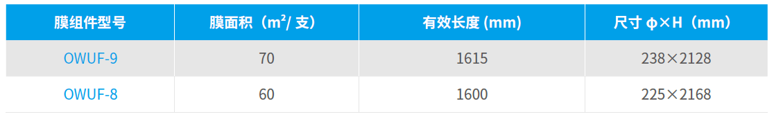 注:灌封膠材質為環(huán)氧樹脂;膜管材質為UPVC。