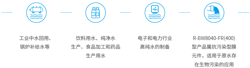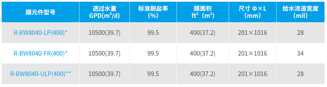 脫鹽率高 采用全新的涂層技術(shù)和自動(dòng)化卷膜工藝,膜元件標(biāo)準(zhǔn)脫鹽率可達(dá)99.5 % 以上;