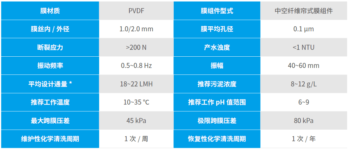 運(yùn)行能耗低 自運(yùn)動抗污染,無吹掃風(fēng)機(jī),單位產(chǎn)水振動能耗≤ 0.03 kW·h/m³;