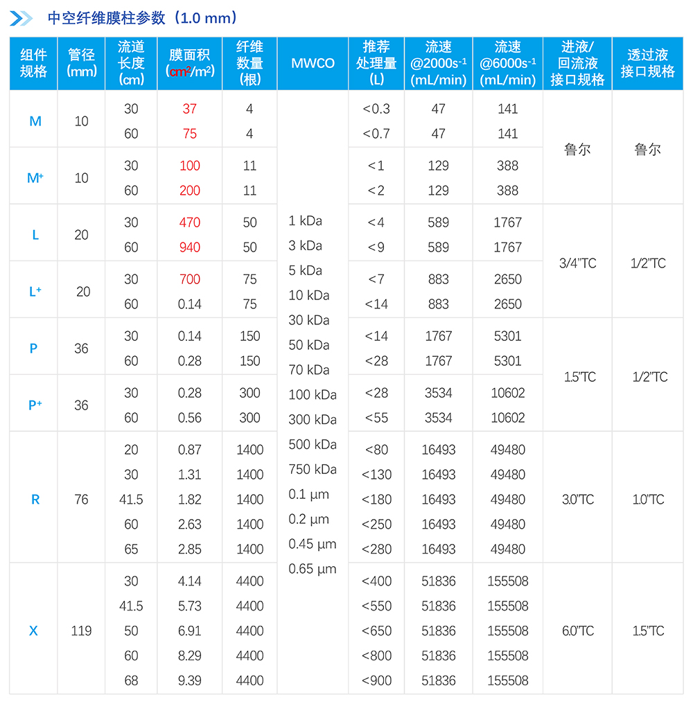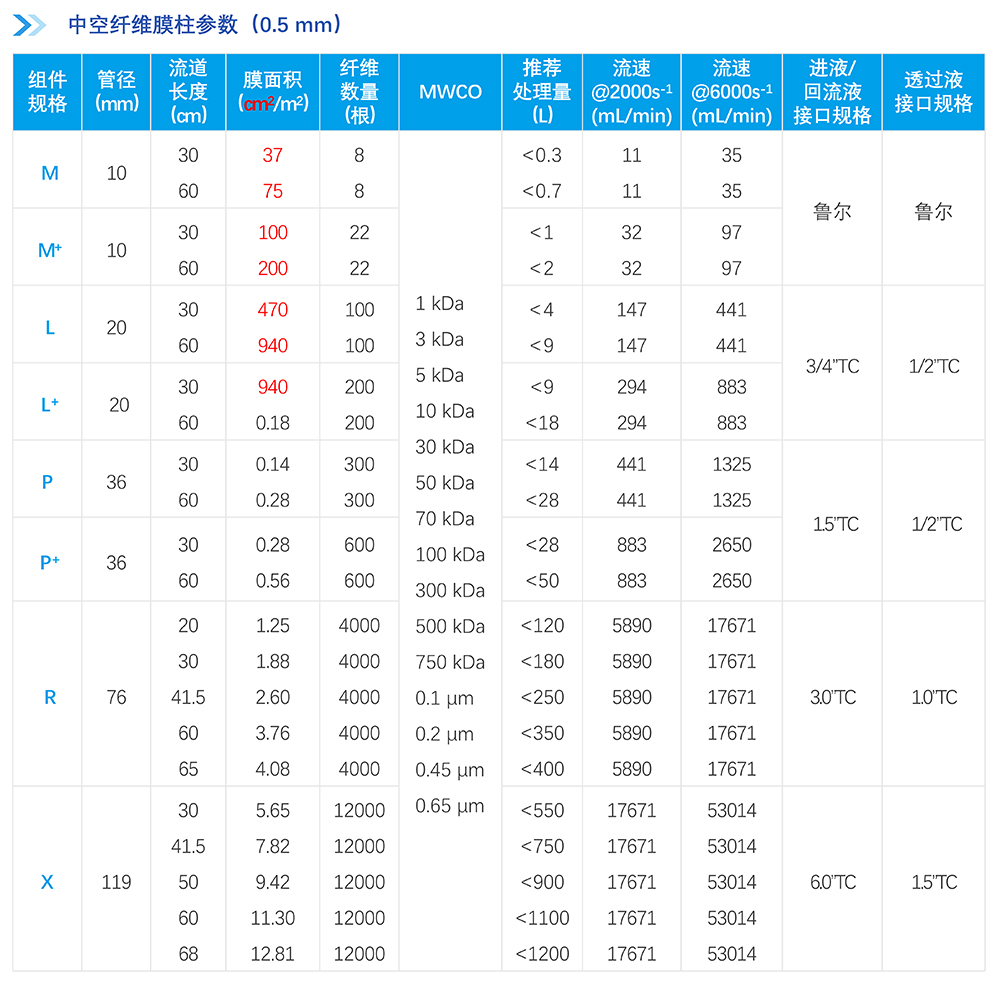 中空纖維膜絲采用改性聚醚砜(mPES)制備,抗污染性能強(qiáng);非對稱梯度孔結(jié)構(gòu)及均一孔徑保證高過濾精度的同時(shí)能獲取更高通量,提高產(chǎn)品收率。中空纖維膜柱采用符合醫(yī)療級別的外殼材料,生物相容性優(yōu)異,在滅菌環(huán)境中穩(wěn)定性優(yōu)良;選用的膠黏劑粘接強(qiáng)度高,耐熱性、耐化學(xué)性及生物相容性優(yōu)良;同時(shí)采用優(yōu)化的注膠工藝,注膠精度高,產(chǎn)品無缺陷。